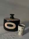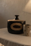 Vintage vase set includes 2 vases shown in photo. Small vase has a small chip on lid as shown.